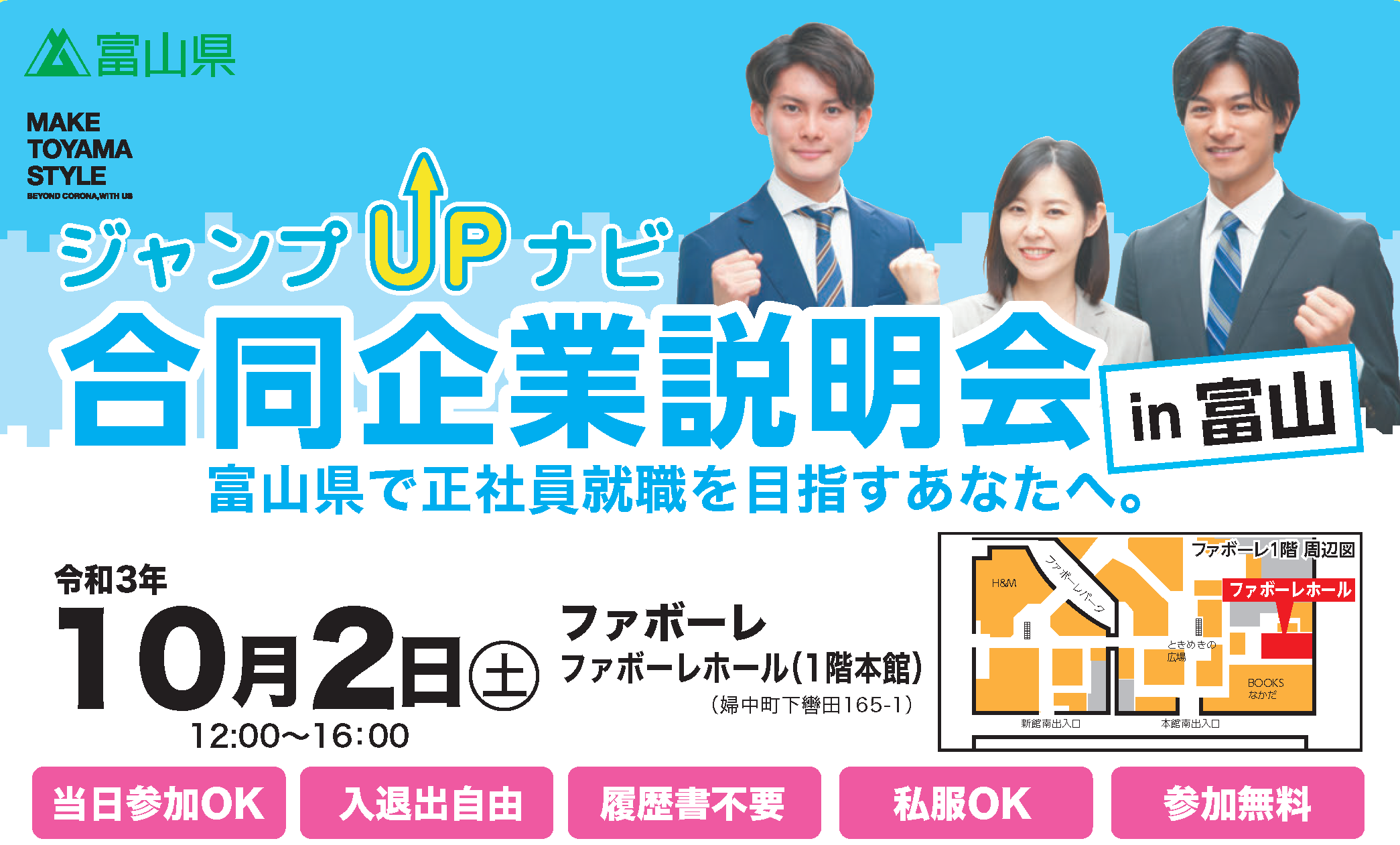 2021年10月3日( 日 )に開催した、 WorkinとやまジャンプUPナビ 合説企業説明会in富山のイベントレポート